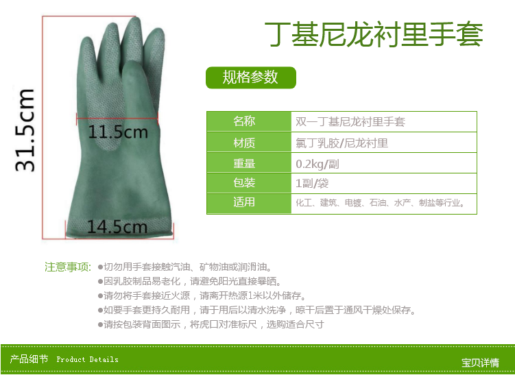 耐酸堿丁基尼龍襯里手套 綠